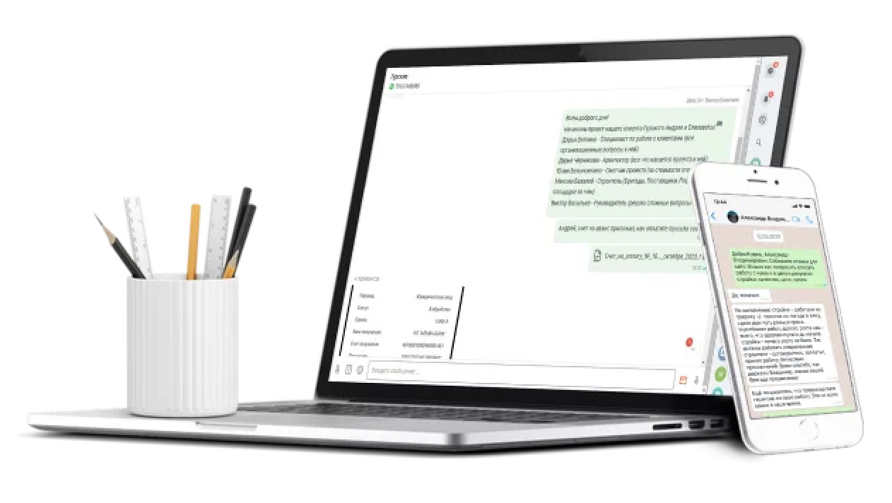 Мы создаем рабочий чат, в котором находятся: менеджер, прораб, снабженец и д.р. Вы можете задавать вопросы в чате.